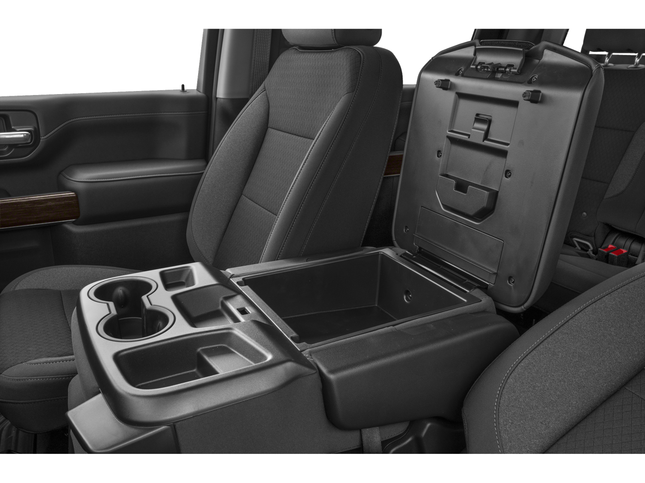 - Seats, front 40/20/40 split-bench with upper covered armrest storage with fixed lumbar (Standard on Crew Cab and Double Cab models only.)